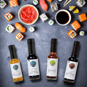 ????????Ce délicieux mélange est une recette japonaise originale et contient les ingrédients clés de la fabrication des sushis : du vinaigre de riz brun, du mirin et de la sauce soja .